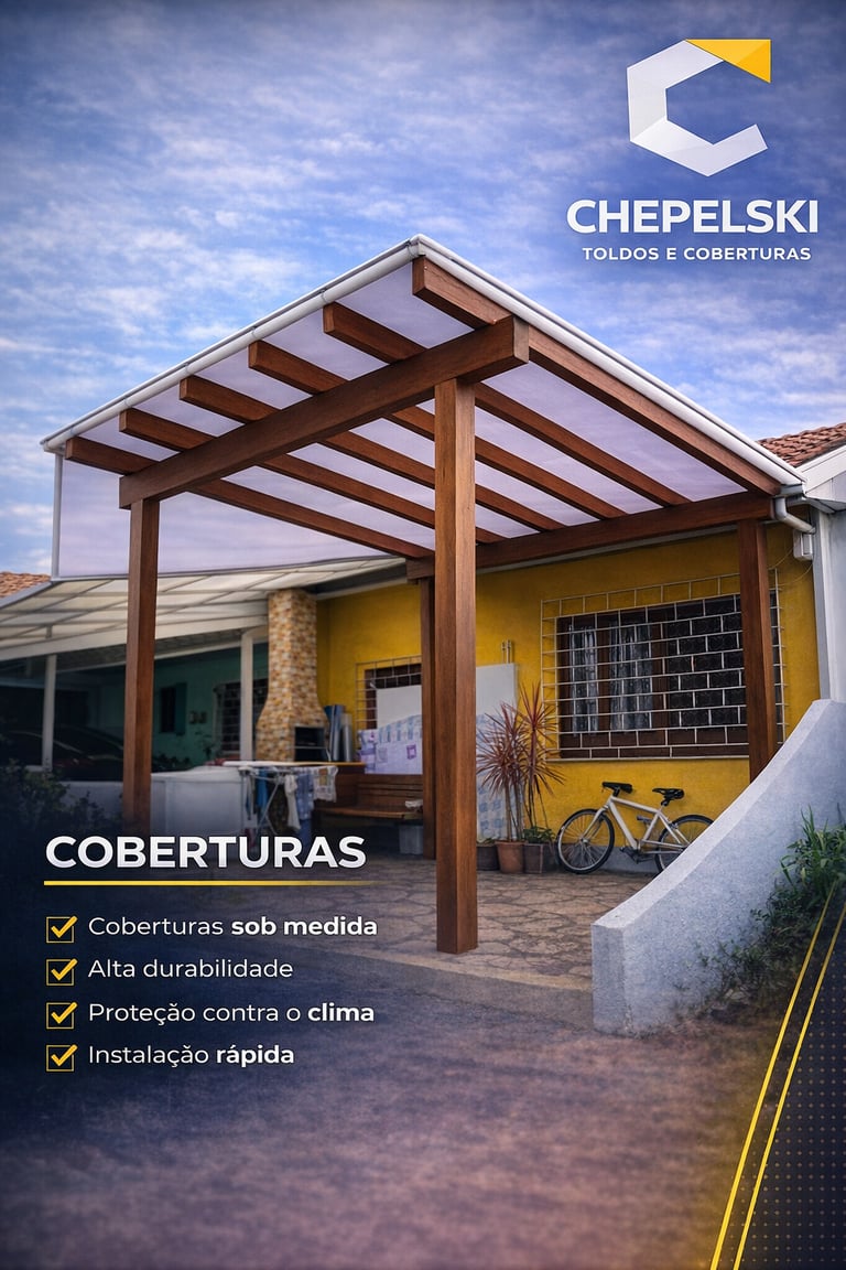 Ter uma área externa sem cobertura significa lidar constantemente com mudanças climáticas e limitações no uso do espaço. Isso acaba reduzindo o aproveitamento de áreas que poderiam ser muito mais úteis no dia a dia. Com as coberturas da Chepelski, você ganha conforto térmico, proteção e um ambiente muito mais funcional. Desenvolvemos projetos personalizados que atendem sua necessidade com qualidade e durabilidade. Entre em contato e tenha um espaço pronto para qualquer ocasião.